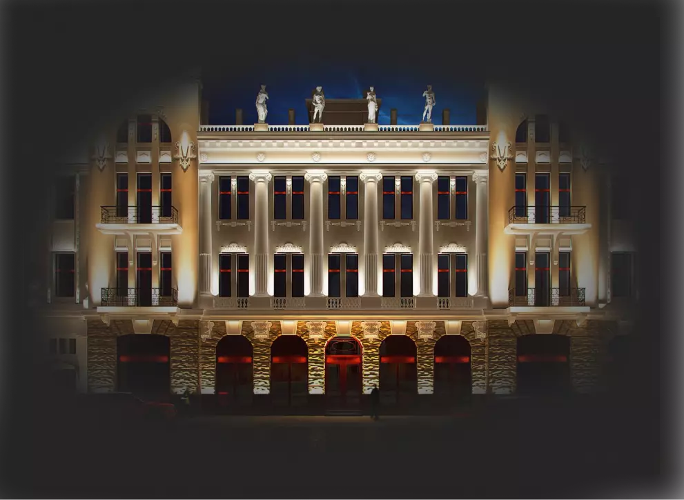 Освещение фасадов зданий: частных домов/коттеджей, административных зданий, отелей, гостиниц и др.