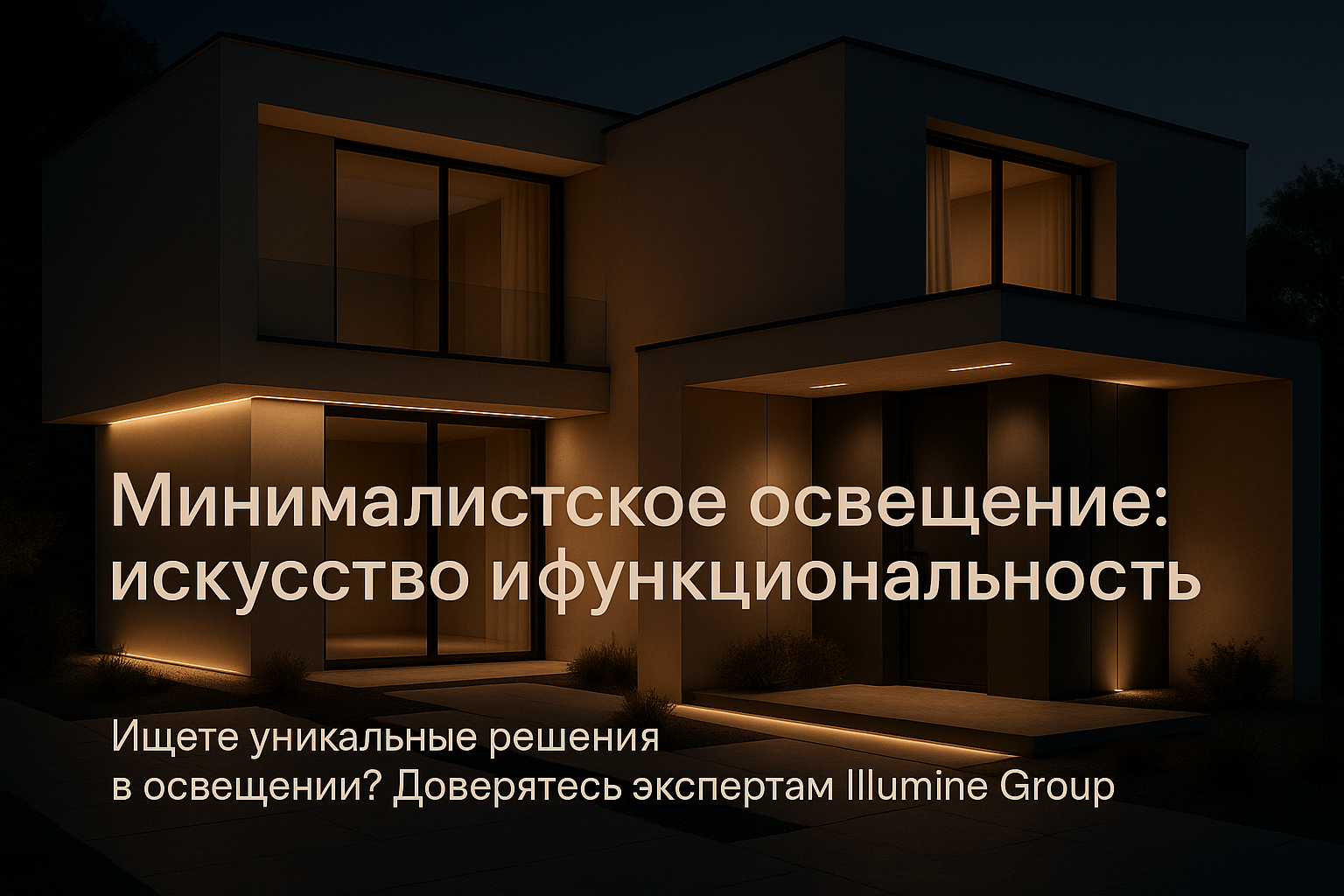 Минималистское освещение фасада: В одном из проектов была использована монохромная палитра и встроенные светильники, которые подчеркивали текстуру фасада и привносили архитектурную выразительность.