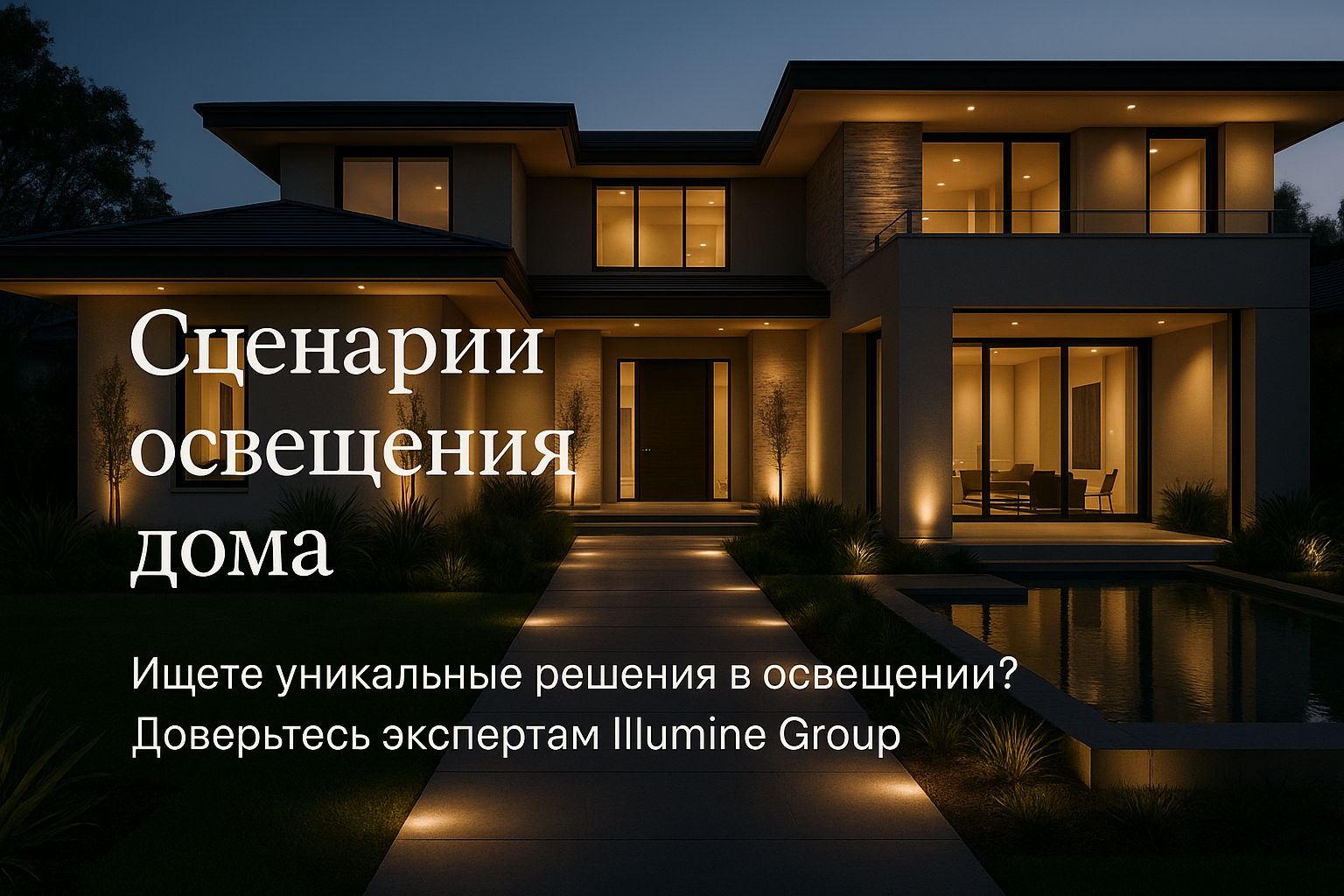 По мере захода солнца, освещение переходит в вечерний режим, создавая уютную атмосферу для отдыха. Функциональные светильники освещают дорожки, ступени и крыльцо, обеспечивая безопасность. В этот период важно: